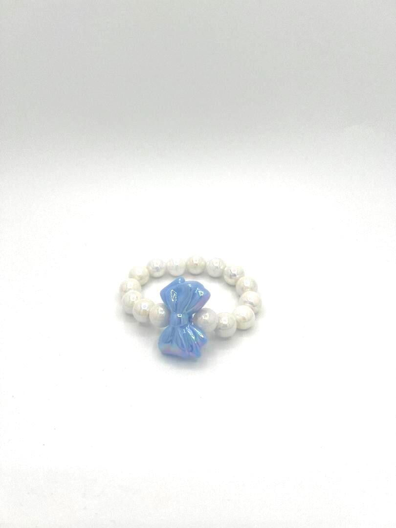 This bracelet is made for the little girl who loves all things pretty and playful. With shiny pearl-like beads and a glossy bow charm, it’s a sweet and stylish piece that adds a little sparkle to any outfit. Whether she’s dressing up for a party or just wants to feel fancy on a regular day, this stretchy bracelet is made to fit comfortably and shine brightly.