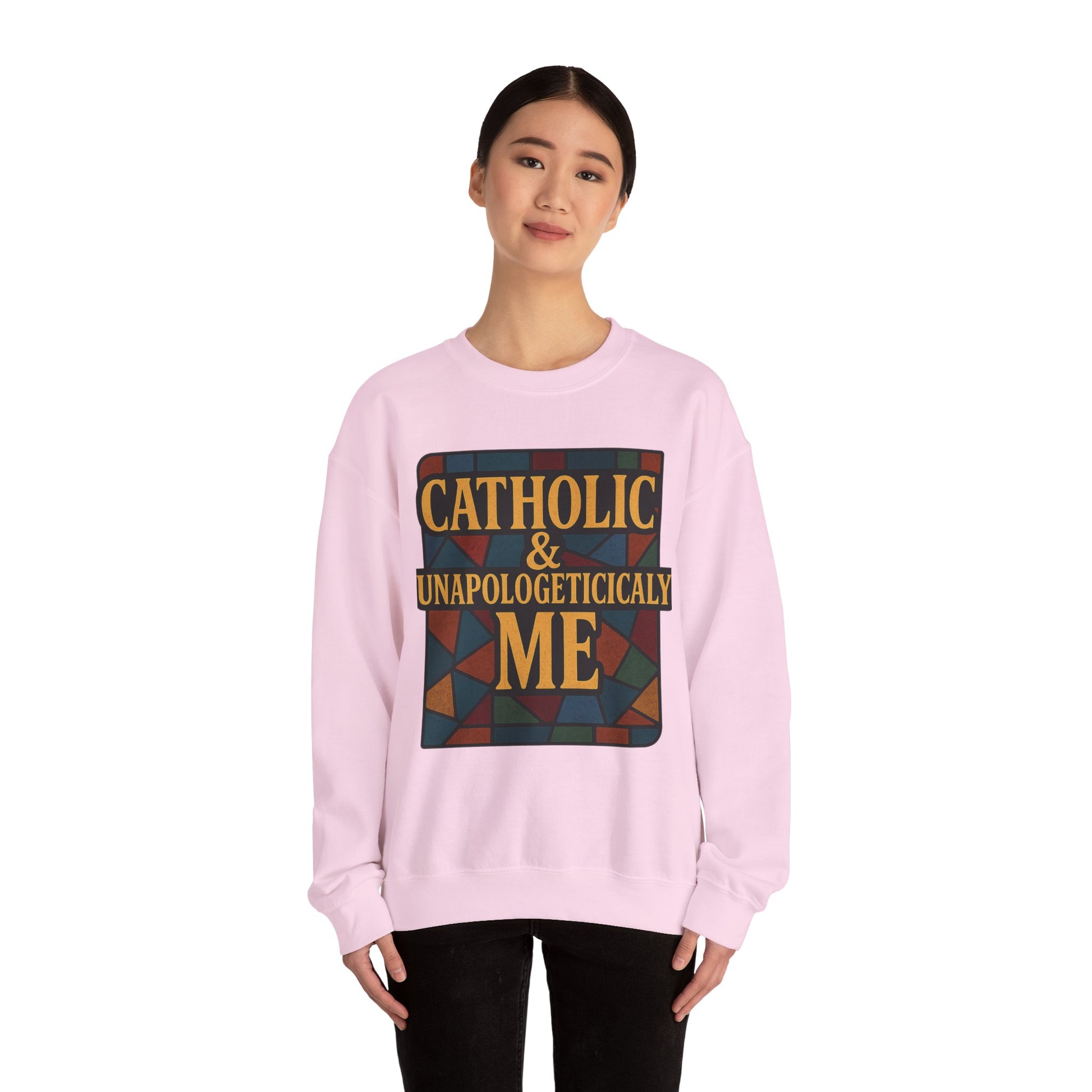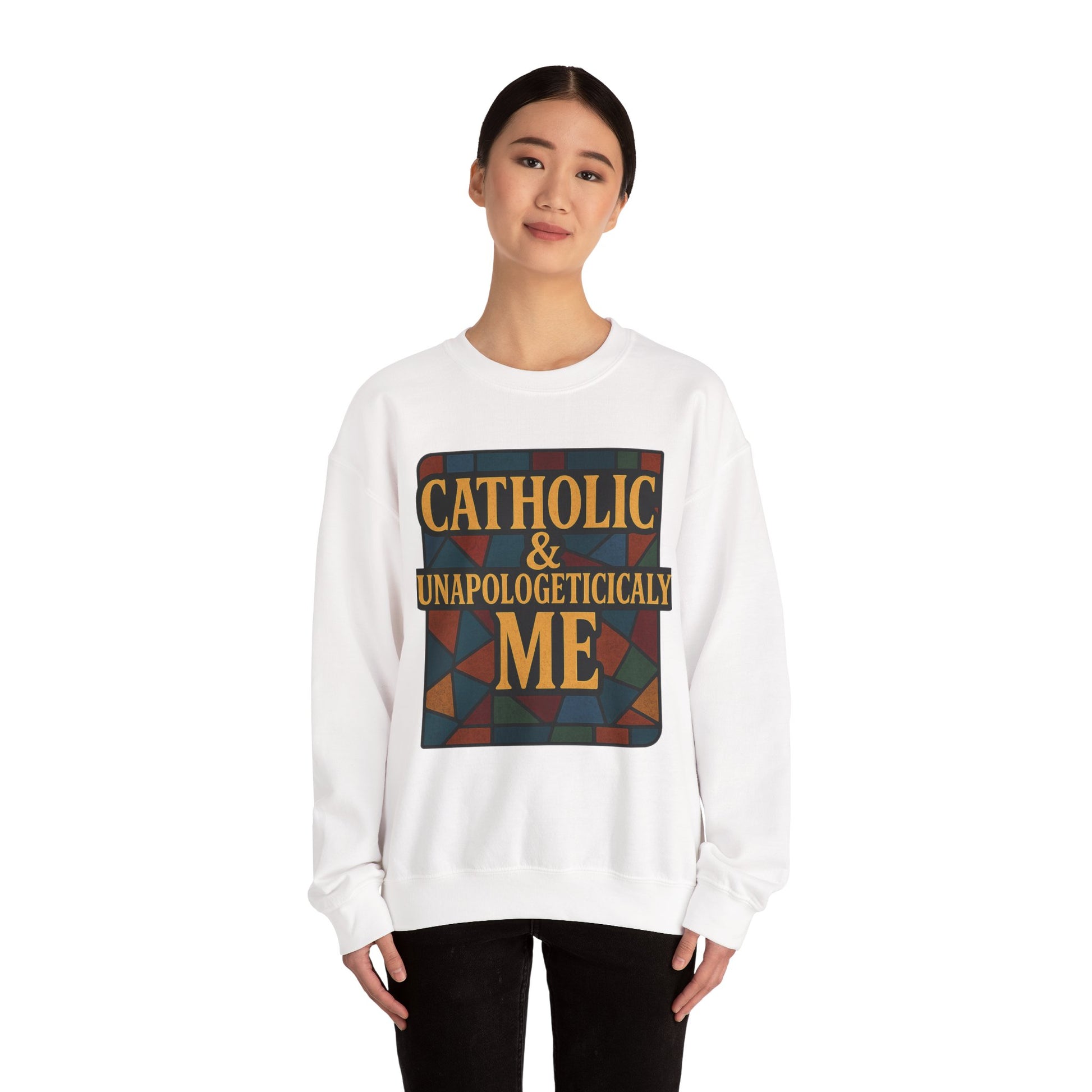Embrace your faith and individuality with this stylish Unisex Heavy Blend™ Crewneck Sweatshirt, a perfect blend of comfort and attitude. This cozy sweatshirt features a vibrant design that boldly declares ‘CATHOLIC & UNAPOLOGETICALLY ME,’ capturing a spirit of authenticity and pride. Ideal for casual outings or cozy nights in, it effortlessly uplifts your wardrobe. Suitable for adults, this sweatshirt resonates with anyone who embodies their beliefs unapologetically. It's a thoughtful gift for special occasions like Christmas, Easter, or just to celebrate one’s unique identity. Let this piece inspire confidence and warmth in your everyday life, making it a staple in your collection.