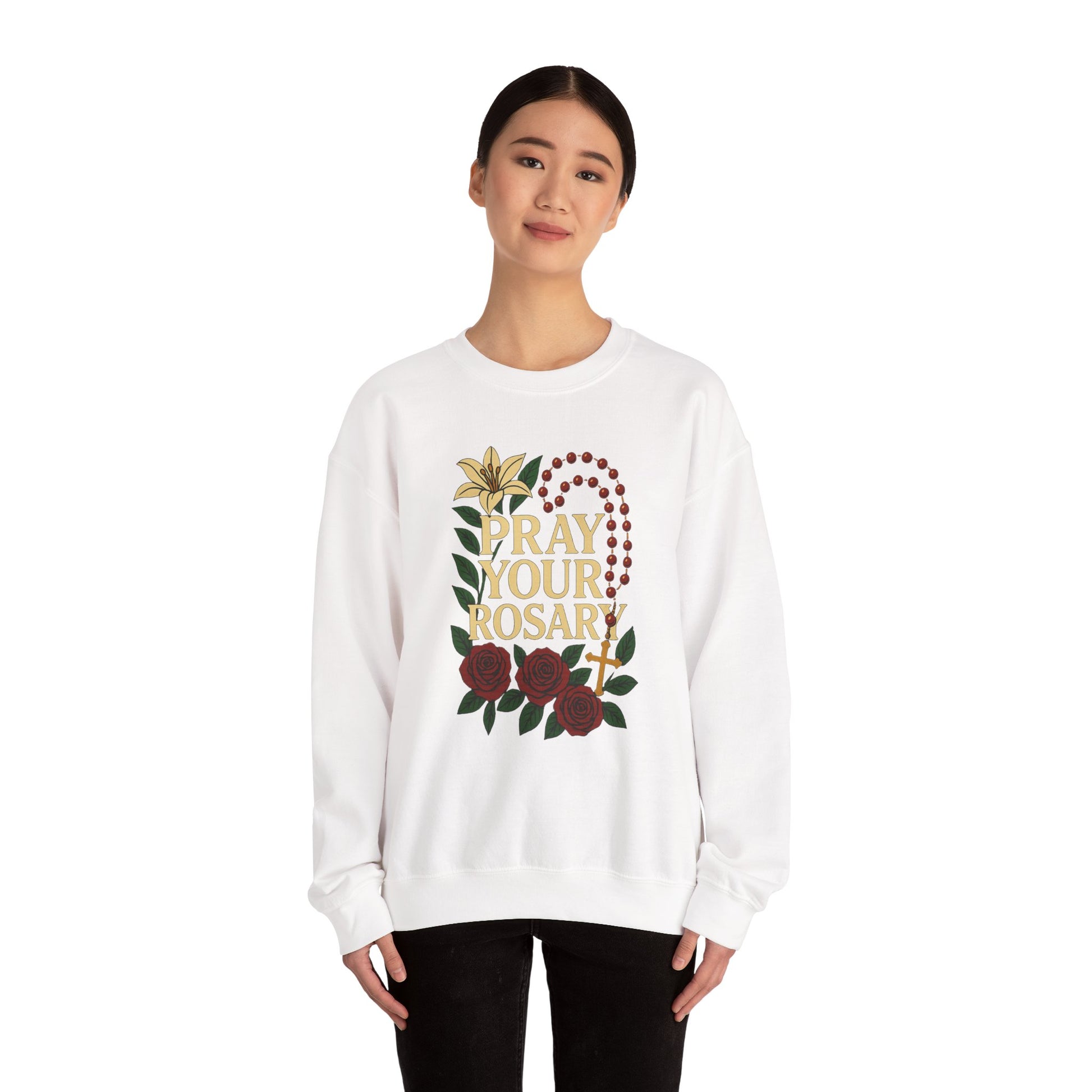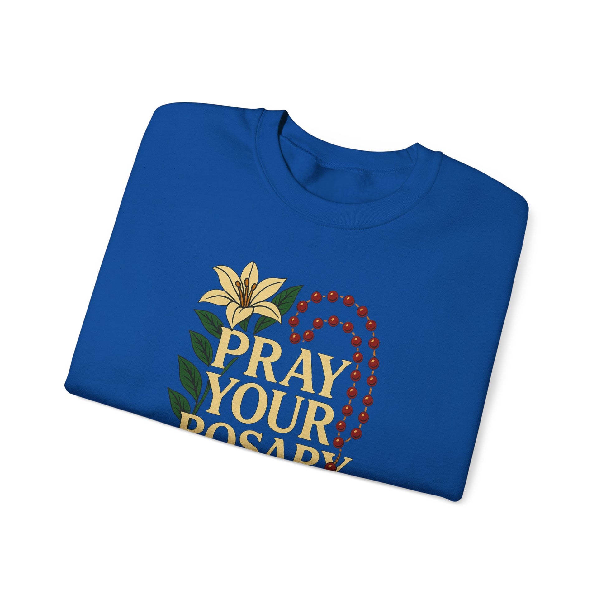 Pray Your Rosary Sweatshirt, Religious Crewneck, Christian Gift, Faith and Prayer Apparel, Cozy Spiritual Clothing, Perfect for Church